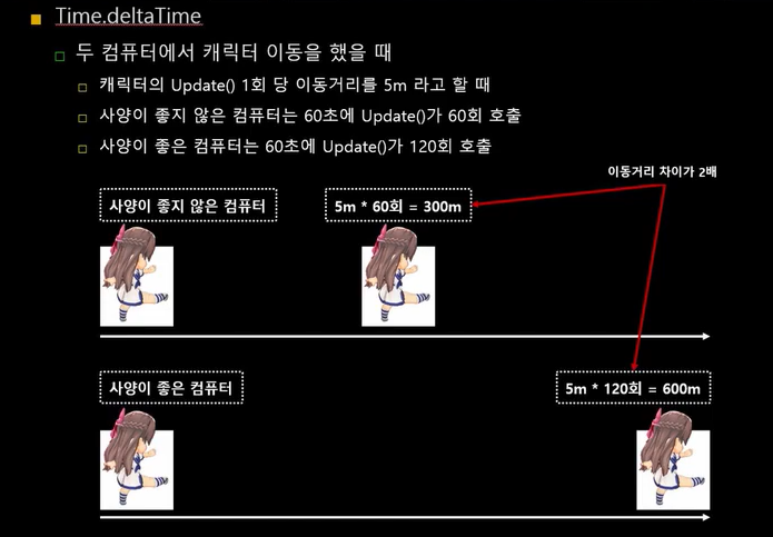 Update()가 FPS에 따라 1초에 몇 번 호출될지 결정되기 때문이다.