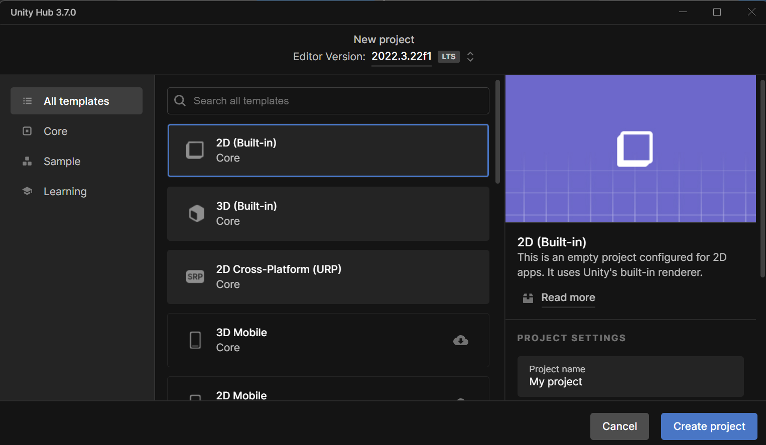 오브젝트를 이동시키기 위해 player 이미지를 가져온 후, 2D 오브젝트> Sprite 에서 원하는 오브젝트를 생성한다.