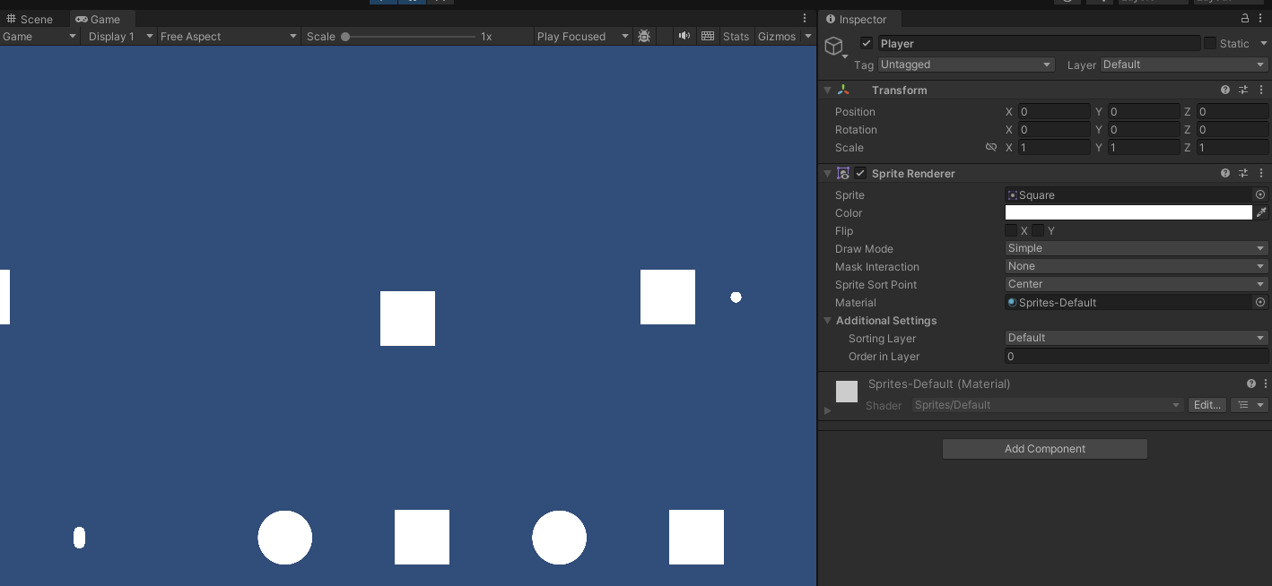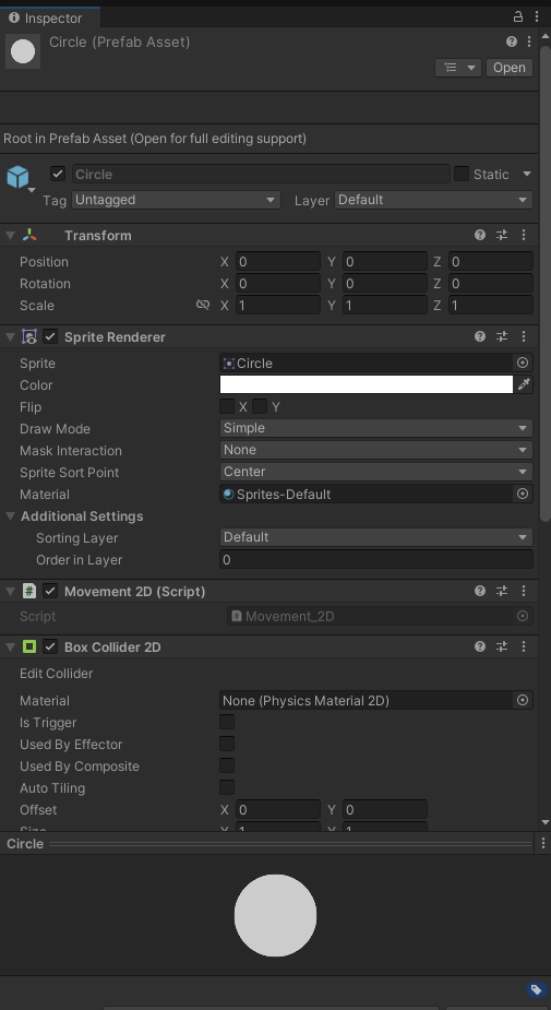 플레이어가 총알을 쏴서 맞출 것이기에 circle Prefab에도 Box Collider 2D를 추가한다.