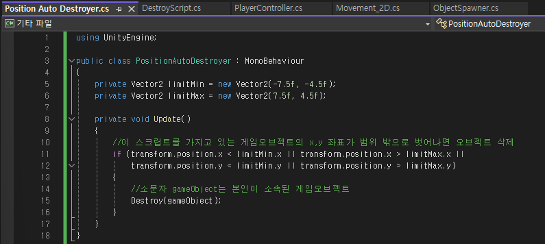 특정 범위를 벗어났을 때 오브젝트 삭제