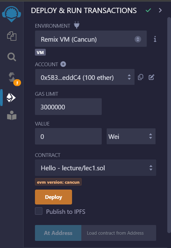 위의 코드를 컴파일해서 deploy 하면 다음과 같은 결과가 나오게 된다, 이때 ctrl + s 단축키로 컴파일이 가능하다.