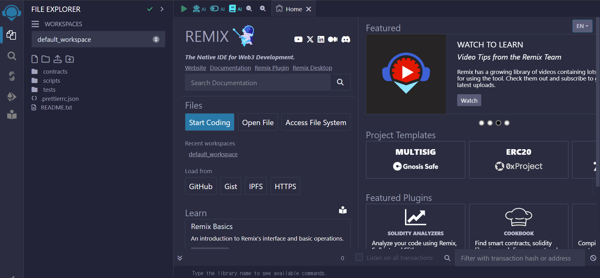 솔리디티 언어를 접하기 위해서 리믹스(remix)를 사용할 예정이다.