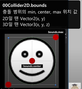 //플레이어 오브젝트의 Collider2D min, center, max 위치 정보