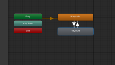 idle 이미지와 이미지를 같이 분할해준다. 이후, PlayerDie라고 animation asset을 생성하고, Animator 뷰로 가서 PlayerDie 즉, 사망 애니메이션을 추가할 수 있다.
