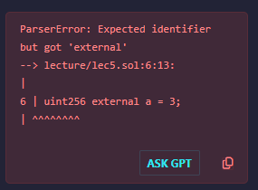다만 여기서 uint256의 접근 제한자를 external로 바꾸게 되면 오류가 나게 된다.