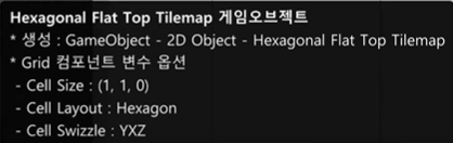 - Grid : 타일 배치 방식으로 Rectangle, Hexagon, Isometirc, Isometric Z As Y
