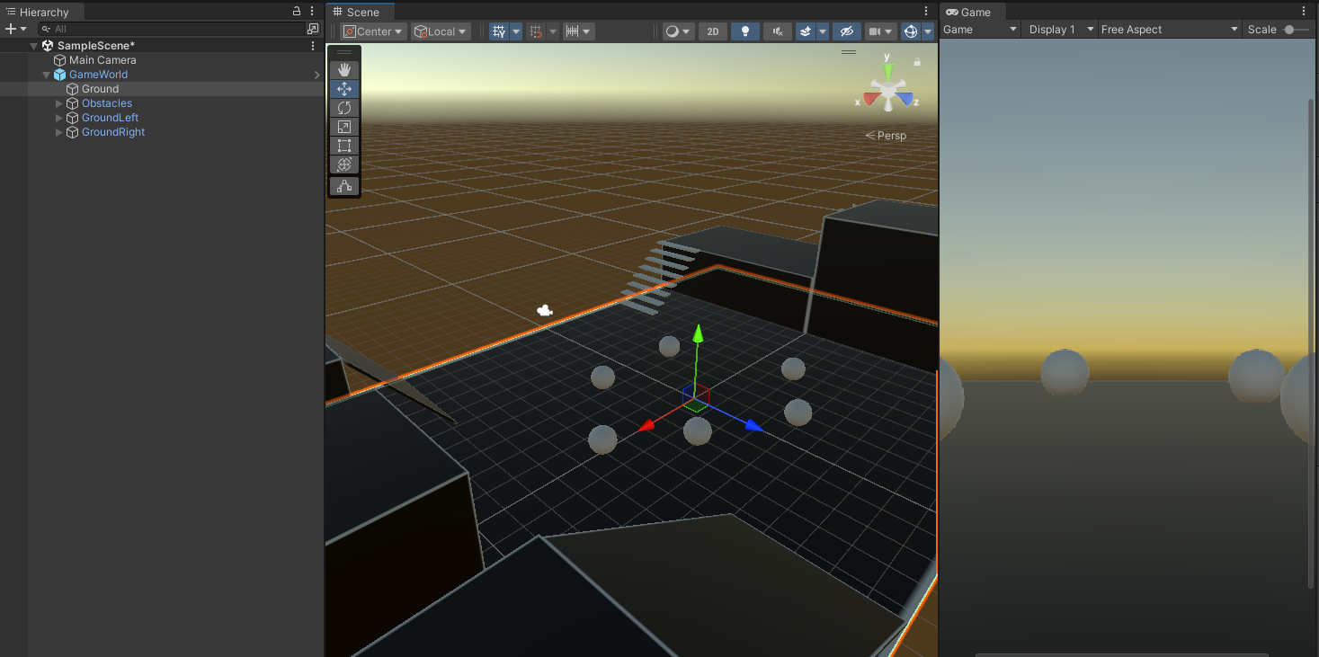 게임 월드 prefab을 Hierarchy View로 이동하여 배치한다.