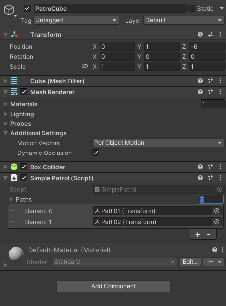지정된 경로를 자동으로 이동하는 “SimplePatrol” 스크립트