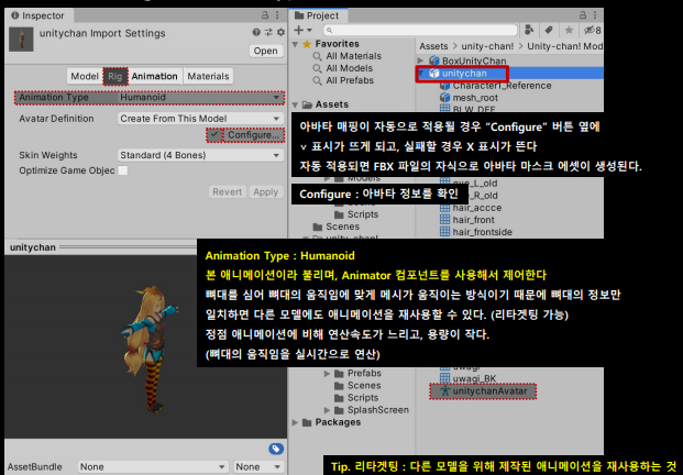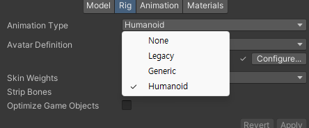- Optimize Game Object : 게임오브젝트의 Transform 계층 구조를 Avatar와 animation 컴포넌트에서 제거 ( 성능 향상)