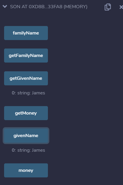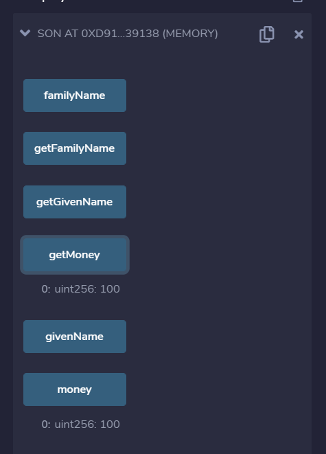 현재 아버지 컨트랙에는 3개의 변수 3개의 함수가 있으며, familyName 과 givenName, money 3개의 변수를 정의한다.