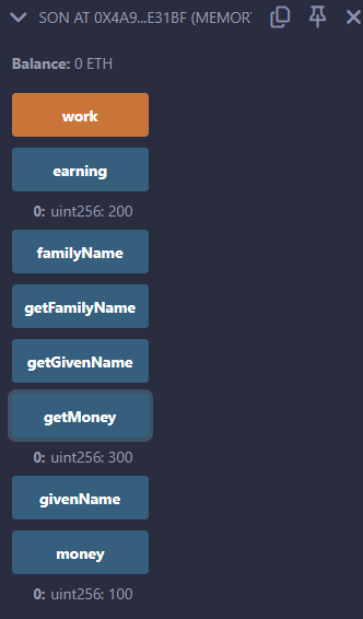 그리고 getMoeny 를 누르면 아버지에게 받은돈 moeny 와 아들이 번돈 earning 이 합쳐져서 아들의 재산을 보여준다.