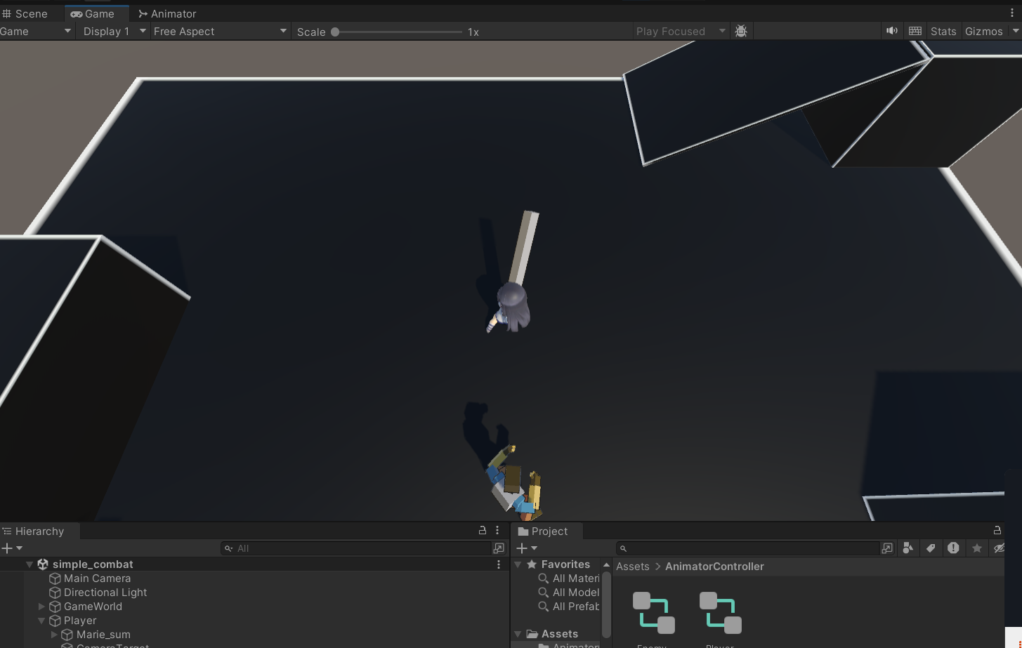 이번에는 발차기를 이용한 공격과 무기를 이용한 연계 공격을 실습하고자 한다.