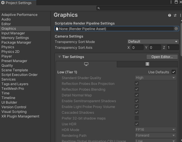 이렇게 되는 이유는 materials의 문제가 발생한 경우로 일반적인 경우에는 Render Pipeline을 적용하면 된다고 했지만.. 2022.3.22 버전의 유니티에서는 그런 기능은 없다..