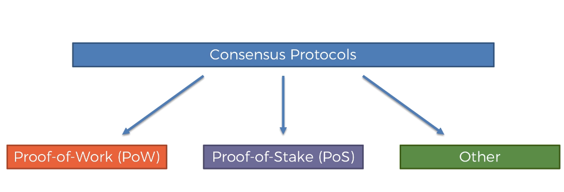 작업 증명(PoW)와 지분 증명(PoS)가 가장 유명하며, 현재 비트코인, 이더리움에서 사용된다.