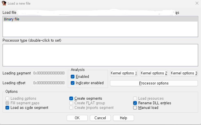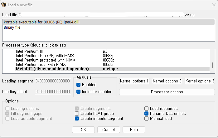 IDA v7.6 pro 버전에서 processor type 중에서 metapc 가 포함되지 않아서 생기는 오류